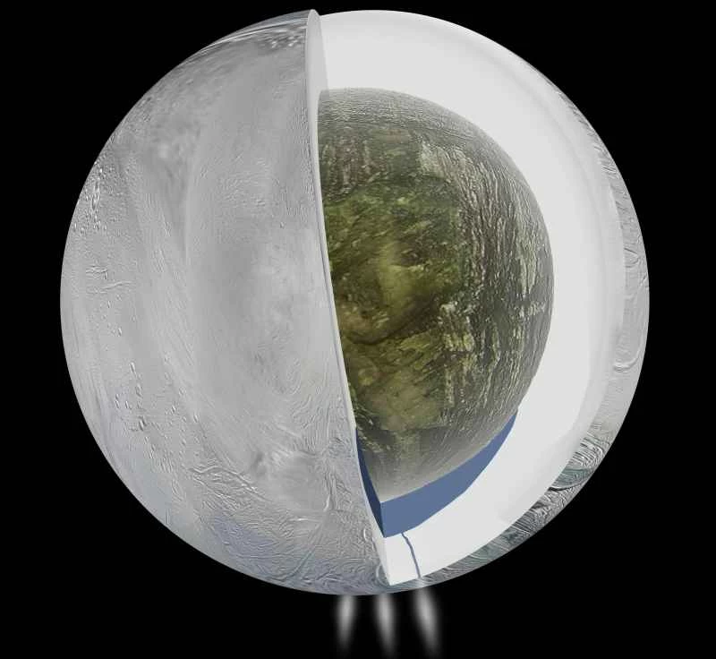 在土星的一顆衛星-土衛二(恩克拉多斯)上,天文學家偵測到了被厚厚冰層覆蓋的液態水海洋。這片海洋的面積與美國蘇必利爾湖相仿,並且與土衛二的矽酸鹽內核相連……這意味著其中可能溶解著生命必需的礦物質。 「事實上,這使得土衛二的內部成為一個極具吸引力的潛在生命場所,」參與了土衛二海洋發現研究的康奈爾大學天文學家喬納森·盧寧在一次記者電話會議上說道。