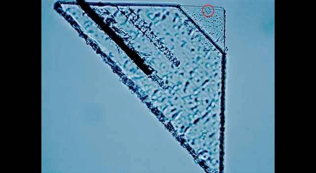 「我們使用這種微型操縱器和一根針,就像用縫紉機一樣,」韋斯特法爾說。 「我們把針插入氣凝膠大約10微米,然後移動位置,再鑽一個大約10微米深的孔,如此反覆。」鑽出一排這樣的孔後,研究人員再次用針刺入,使孔深增加10微米。他們一遍又一遍地重複這個過程,最終,這些孔連成一個大的切口。然後,研究人員就能取出一個極小的、門擋形狀的氣凝膠楔形塊,其中包含了顆粒及其運動軌跡。