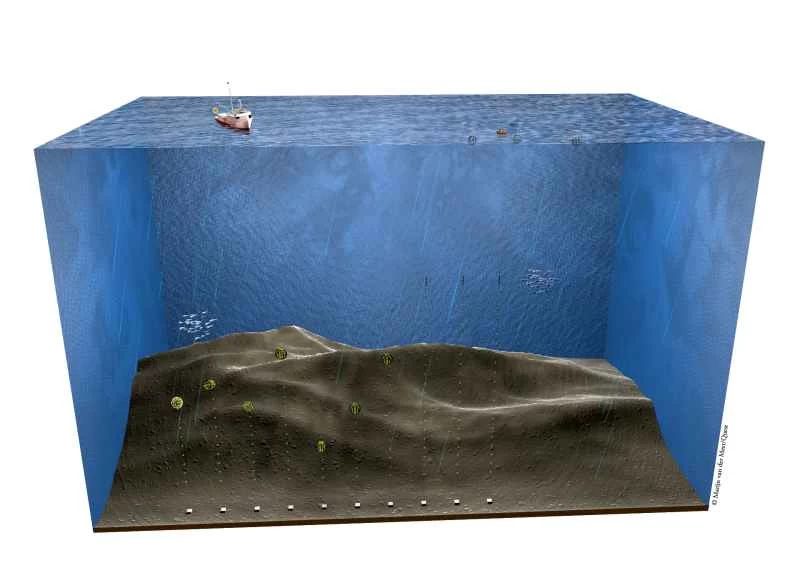 它們將被安裝在20英尺長的桿子上,每個探測單元將連接40根桿子。里科貝內說,探測器看起來就像一系列海底塔。每立方公里水體大約會有100個探測單元。整個網路透過中央不銹鋼管道連接,管道內含光纖,用於將探測器與數英里外的岸上站連接起來。