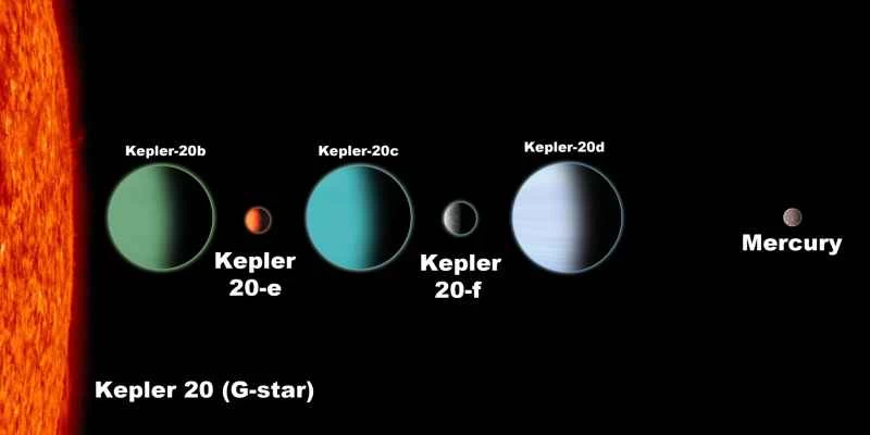 這些小型行星實際上是開普勒-20觀測站已發現的太陽系中最新發現的成員。其中三顆最大的行星分別被命名為開普勒-20b、20c和20d,直徑分別為15,000英里、24,600英里和22,000英里,公轉週期分別為3.7天、10.9天和77.6天。根據哈佛史密松天文物理中心(CfA)指出,開普勒-20b的質量是地球的8.7倍,而開普勒-20c的質量是地球的16.1倍。克卜勒-20d的質量不到地球的20倍。