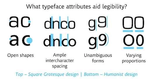 頂行文字採用的是一種名為「方體怪誕體」的字體,底行文字採用的是一種「人文主義」字體。您可能會發現底行文字更容易閱讀,因為它包含更多開放的形狀(例如,“c”縮小到4號字時不會看起來像“o”),字母之間的間距更清晰,而且字形本身也更獨特(不會將“g”與“9”混淆,也不會將大寫字母“O”與數字0混淆)。