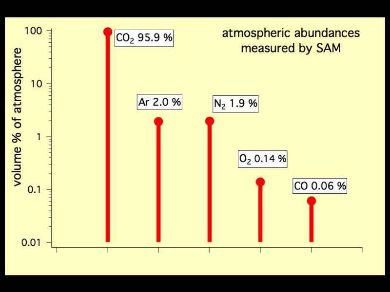 週五,噴射推進實驗室的科學家表示,「好奇號」火星車的火星樣本分析系統(SAM)幾乎沒有偵測到甲烷。 SAM中可調諧雷射光譜儀的儀器負責人克里斯·韋伯斯特表示,他有95%的把握認為火星上的甲烷含量在0到5ppb之間。 「總而言之,到目前為止,我們沒有探測到任何甲烷,」他告訴記者。他還表示,研究團隊已經發現證據表明,火星至少失去了一半的原始大氣。