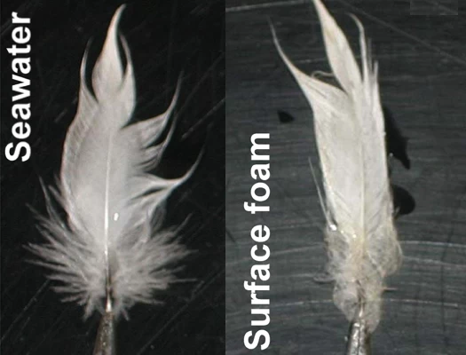 由於藻類本身無毒,不可能是鳥類患病的直接原因,傑瑟普便將注意力轉向唯一可能的嫌疑對象——赤潮附近海灘上不斷出現的大片泡沫。他突然想到,可以把一根乾淨的羽毛浸入泡沫和鹽水的混合物中。 「普通的羽毛,」庫德拉解釋說,「抖一抖就乾了。」然而,當傑瑟普把羽毛從混合物中取出時,它並沒有抖乾——而是完全濕透了。