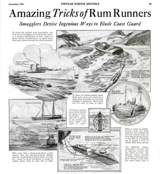 與流行文化中的描述相反,走私並非僅僅意味著加入黑手黨或追捕禁酒令官員。隨著時間的推移,私酒販子們掌握了製造大量(無毒)原酒的配方,而往返於加拿大和底特律之間的走私者則發明了各種裝置,使他們能夠不被發現地運輸成箱的酒。就連受過專業訓練的科學家也找到了規避法律的方法:布魯克林化學家約翰·C·奧爾森博士注意到,禁酒令修正案禁止的是酒精飲料而非固體,於是他在實驗室裡研製出了「果凍雞尾酒」。