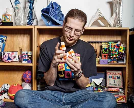 他辦公室的書架上擺滿了玩具、小擺飾和他與馬蒂一起折疊的紙藝作品。 「我覺得自己像個遊戲鑑賞家,」他坐在連接著任天堂Wii的52吋電視機旁說道,「我幾乎每款遊戲都想玩一會兒,至少體驗一下不同的遊戲類型。」最近,他和馬蒂進行的一些項目與其說是遊戲,不如說是對荒誕現象的研究。例如,他們在公園裡用麵包屑圍成一個圓圈,觀察鳥類的反應。他們還計劃研究義大利麵形狀的幾何結構。他們甚至打算把鴿子關進麵包籠子裡,讓它啄出一條出路逃出去。這些項目現在看來或許毫無意義,但誰能預料到玩耍會把我們引向何方呢?