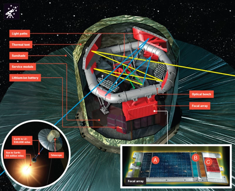 這艘重達兩噸的探測器將繪製銀河系一千多億顆恆星中的十億顆的星圖,收集每顆恆星位置、速度、方向、顏色和亮度等三維資料。了解恆星的位置和運動方向將有助於天文學家確定它們的起源。而這或許能揭示銀河系的形成與演化過程。