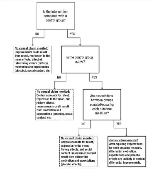 他們製作了這個簡單易用的流程圖,用來判斷心理介入(例如電子遊戲或腦力訓練)是否真的帶來了改善: