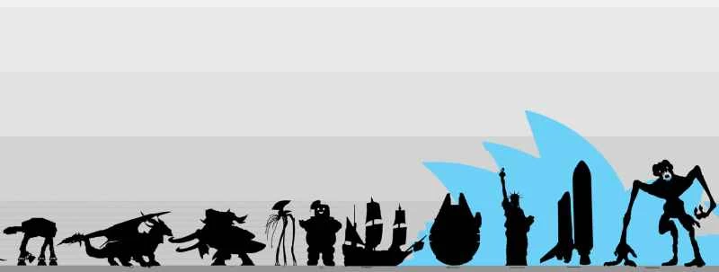 DeviantART 用戶 lexinator117 製作了這張比例尺地圖,對比了宅文化和流行文化標誌性事物的大小。現在我們終於知道了:美版哥吉拉無論在創意或體型上都遜於日版。我也一直要么嚴重高估了《星際大戰》中 AT-AT 步行機的尺寸,要么嚴重低估了悉尼歌劇院的規模。