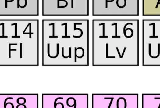 如今,一系列新的實驗證實了其中一種元素的發現。一個國際物理學家團隊在德國GSI加速器中合成了一種含有115個質子的元素。這並非研究團隊首次合成這種元素,它的臨時名稱為ununpentium(拉丁語意為“一一五”,加上後綴“-ium”)。早在21世紀初,由俄羅斯和美國科學家組成的團隊就首次合成了ununpentium,並在2006年發表了相關論文。然而,當時國際純粹與應用化學聯合會(IUPAC)認為這不足以正式承認或命名ununpentium。 GSI的最新研究是朝著正式承認該元素邁出的又一步。