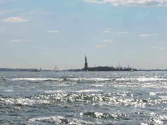 是不是很想去游泳?河對岸的自由女神像似乎有點燥熱難耐: