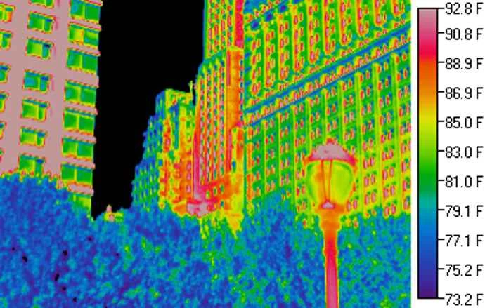 紐約市的夏天,即便擁有如此繁華熱鬧的都市,也難免令人難熬。這座城市簡直就像是漂浮的烤箱。城市熱島效應,包括紐約在內,指的是那些由於樹木稀少、路面陰暗潮濕且容易積聚熱量而導致氣溫遠高於週邊鄉村地區的都會區。