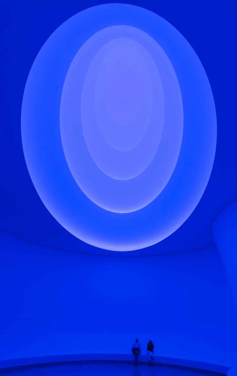 特雷爾最著名的作品是他位於亞利桑那沙漠一座死火山中仍在建造的巨型裸眼天文台。今年夏天,他將古根漢美術館著名的圓形大廳從一個開放式中庭改造成了一個巨大的彩色光球。許多遊客會躺在博物館的地板上,在光球下方靜靜地仰望數分鐘甚至數小時,彷彿在觀看某種天文奇觀。