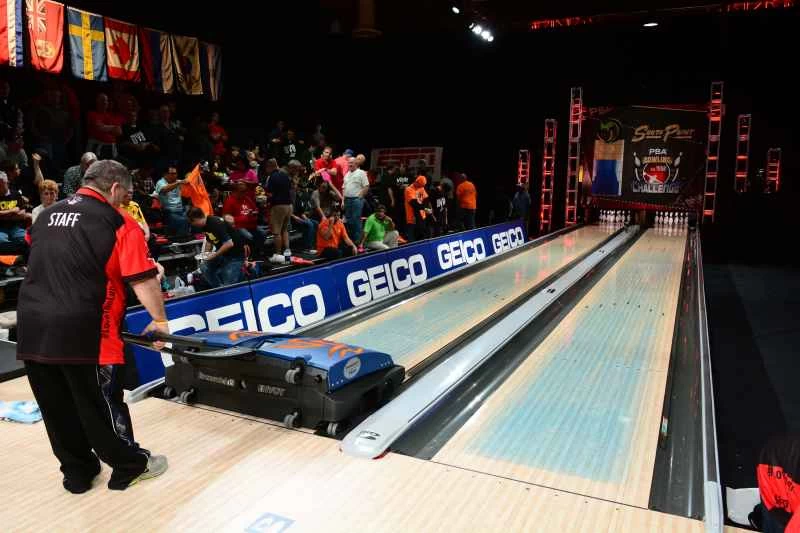技術背景:所有保齡球道都會塗上一層油,這層油是透過類似贊博尼(Zamboni)的機器塗抹的。在PBA巡迴賽中,專門的球道維護團隊會以不同的、肉眼看不見的圖案塗抹油,旨在改變比賽的難度。你家附近的保齡球館可能採用的塗油方式是為了減少洗溝球,讓技術水平較低的顧客也能玩得開心。而在職業比賽中,塗油圖案的設計則更加嚴苛,而且會使用多種不同的圖案,以確保每場比賽的難度都不一樣。簡而言之,油會影響球的運動軌跡,從而使球道變得非常容易上手,或者難度堪比職業比賽。
