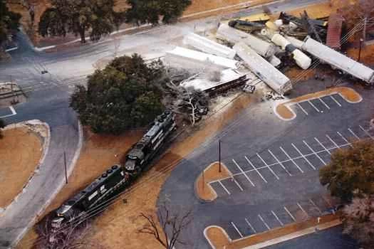 七小時後,第二列諾福克南方鐵路公司的貨運列車——兩台機車、25節滿載車廂和17節空車廂——以每小時49英里的速度駛近格蘭尼特維爾。列車司機原本以為可以全速通過。然而,打開的道岔卻將他甩到了側線上。他看到停在那裡的列車,試圖煞車,但為時已晚。兩台機車和列車的前16節車廂脫軌;司機不幸罹難。其中三節車廂裝載著氯氣,一種常見的工業化學品;其中一節車廂被撕裂。