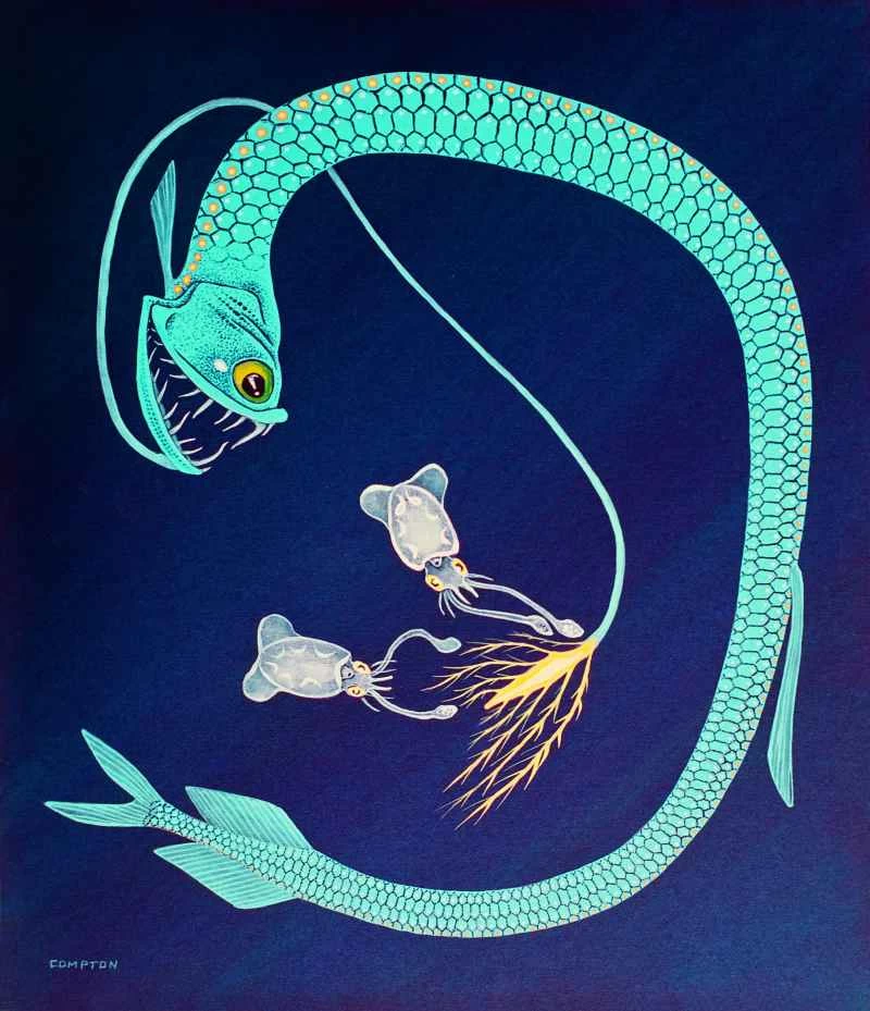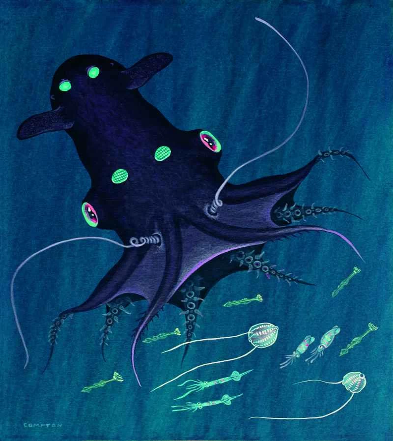 這本書將於週三發行,收錄了其中的59幅畫作,以及關於深海環境和康普頓本人的分類、敘述和背景介紹。您可以在下方看到部分畫作範例。
