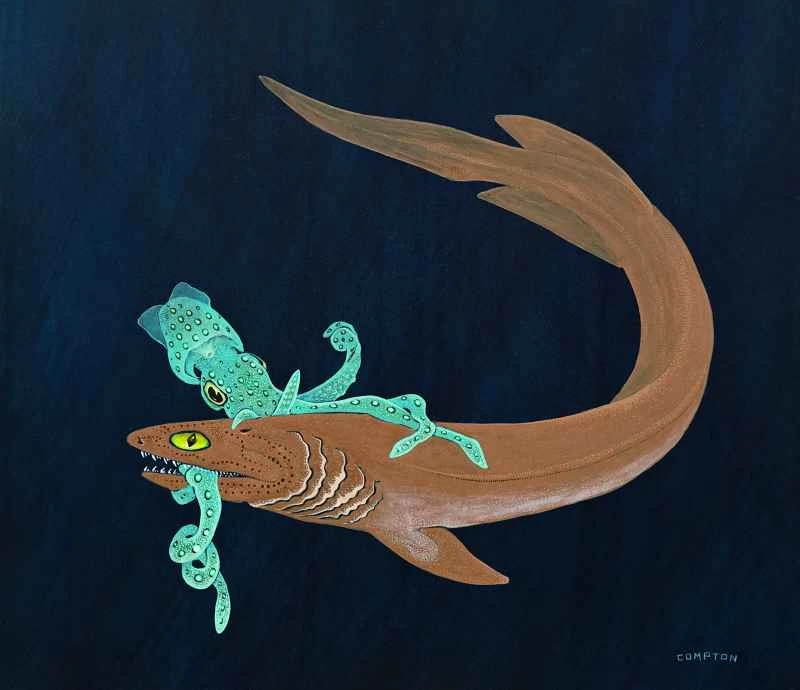 康普頓早年曾在德州公園與野生動物管理局工作,期間他參與了最早的墨西哥灣考察航行,從德州水域採集深海生物標本。之後,他會拍攝這些標本,並將它們繪製成栩栩如生的場景。他也為每幅畫作撰寫分類描述以及奇幻詭譎的旁白。