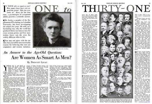 大多數情況下,我們的答案是否定的。不管你喜不喜歡,我們的雜誌始終是時代的產物,在我們138年歷史的前70年裡,我們更加尊重男性,因為科學和女性主義文學還沒有給我們提供理由相信女性能夠取得巨大的成就。