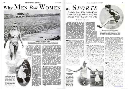 雖然性別之爭早在幾千年前就開始了,但我們直到1920年女性獲得投票權後才開始格外關注。女性開始變得舉足輕重,而作為一家男性主導的刊物,我們對此並不確定是否贊同。我們對那些打破或接近打破男性保持的紀錄的女性運動員嗤之以鼻。我們嘲笑那些認為自己可以開車而不發生事故的女性。 「看來,男性之所以能在運動中擊敗女性,僅僅是因為他們是男性,天生就擁有速度、力量和耐力方面的優越素質!」我們在論證女子體育運動是一場鬧劇之後這樣寫道。