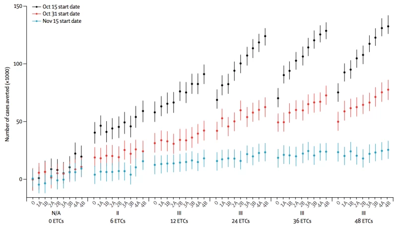 研究人員表示,為了防止這9.8萬例的發生,援助物資必須在10月31日前送達。如果等到11月15日,同樣的援助物資最多只能防止5.4萬例。而同樣的援助物資,如果在10月15日就送達,則可以防止13.7萬例病例的發生。