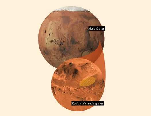 科學家在評估了60個著陸點後,最終選擇了蓋爾隕石坑作為「好奇號」火星車的著陸點。火星車將探索隕石坑內一座緩坡山的低矮側翼。其中,沖積扇尤其引人關注,它可能顯示出流水活動的痕跡,以及可能含有有機化合物的黏土和硫酸鹽沉積物。