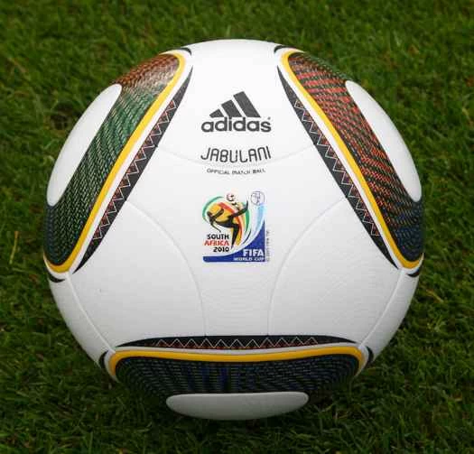 Jabulani 足球僅由八塊 EVA 和 TPU 面板組成,接縫更少,擊球面積增大了 70%,使其更接近完美。雖然 Teamgeist 足球對前鋒來說表現出色,但許多守門員抱怨其空氣動力學設計導致球在空中旋轉不足,飛行軌跡有時難以預測,如同指節球一般。 Jabulani 足球試圖透過阿迪達斯稱之為「空氣動力學凹槽」的設計來穩定球的飛行軌跡,這些凹槽實際上是沿著面板的長條狀凹陷。這些凹槽將球分割成多個類似面板的區域,但透過對凹槽進行模壓處理,阿迪達斯可以確保凹槽位置和形狀的一致性,從而實現最佳飛行軌跡。此外,球的表面還覆蓋著凸起的顆粒,以增強腳部的觸感。