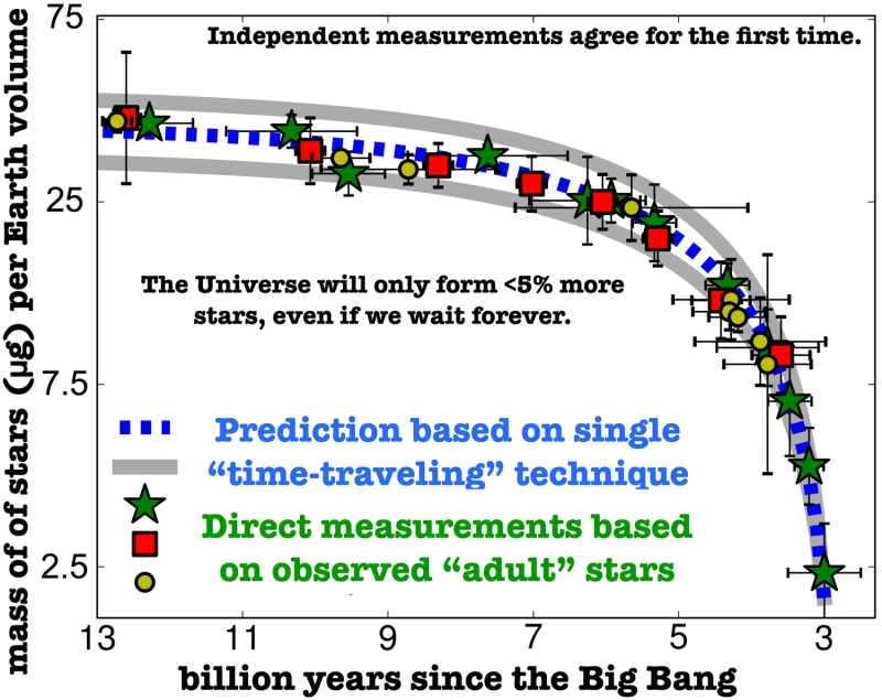 研究發現,現存恆星中有一半形成於90多億年前,而它們全部形成只花了20億年。另一半恆星的形成時間幾乎是前者的五倍。科學家表示,如果這種趨勢持續下去,即使我們永遠等待下去,宇宙中的恆星數量只會增加5%。