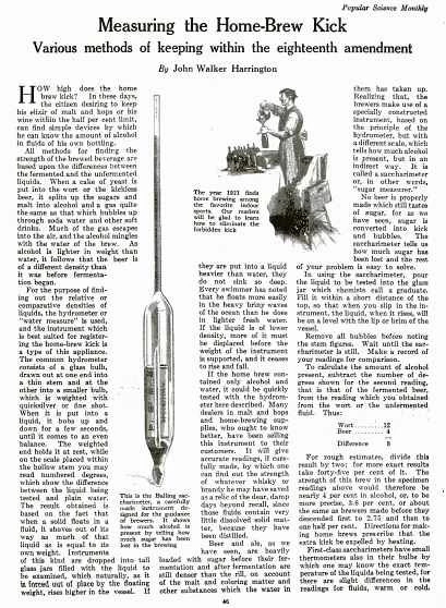 在其他方面,自釀啤酒在政府允許民眾釀造酒精含量為0.5%的飲品後,成為了一種流行的消遣方式。透過查閱我們的檔案資料,我們自豪地宣布, 《大眾科學》雜誌曾教導讀者如何在不喪命或被捕的情況下滿足自己的嗜好。