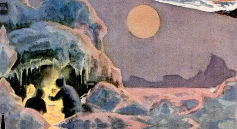 這幅孤獨冰冷的景象並非發生在地球冰封的極地,而是在赤道。太陽正在緩緩消逝,畫中的四個人也是如此。