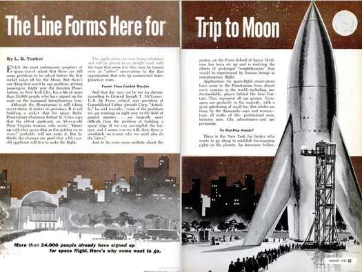 1950年代中期的人們對太空探索和殖民的未來抱持著眾所周知的樂觀態度。在地球之外建立城市不僅能延長我們物種的生存,也能讓我們將藝術和科技的遺產播撒到宇宙之中。
