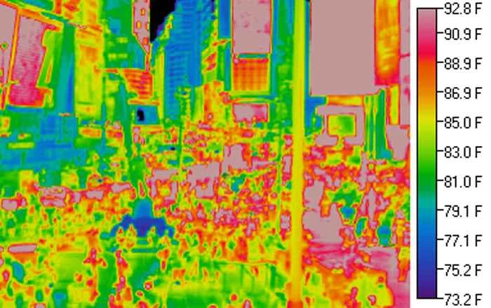 紐約市的夏天,即便擁有如此繁華熱鬧的都市,也難免令人難熬。這座城市簡直就像是漂浮的烤箱。城市熱島效應,包括紐約在內,指的是那些由於樹木稀少、路面陰暗潮濕且容易積聚熱量而導致氣溫遠高於週邊鄉村地區的都會區。
