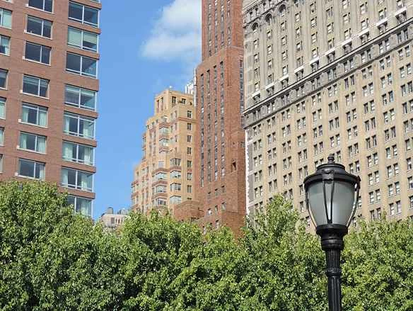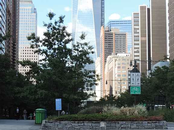 你可以看到中間那座自由塔的一部分,看起來非常涼爽。能夠反射太陽輻射的新建築可以減少熱島效應。
