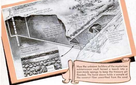 大量的水被排出,但豎井的水位卻始終不變。他們這才發現,自己其實是在試圖從海水中舀水。井水是鹹的,井內的水位會隨著潮汐漲落。不知何故,這個井與環繞島嶼的海水之間存在著某種神祕的連結。