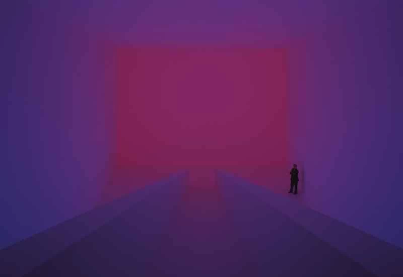 特雷爾最著名的作品是他位於亞利桑那沙漠一座死火山中仍在建造的巨型裸眼天文台。今年夏天,他將古根漢美術館著名的圓形大廳從一個開放式中庭改造成了一個巨大的彩色光球。許多遊客會躺在博物館的地板上,在光球下方靜靜地仰望數分鐘甚至數小時,彷彿在觀看某種天文奇觀。